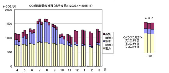[1)直近3年の月間CO2排出量の推移]