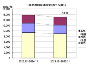 過去2年間では、CO2排出量は全体で4.5%減少となりました。
