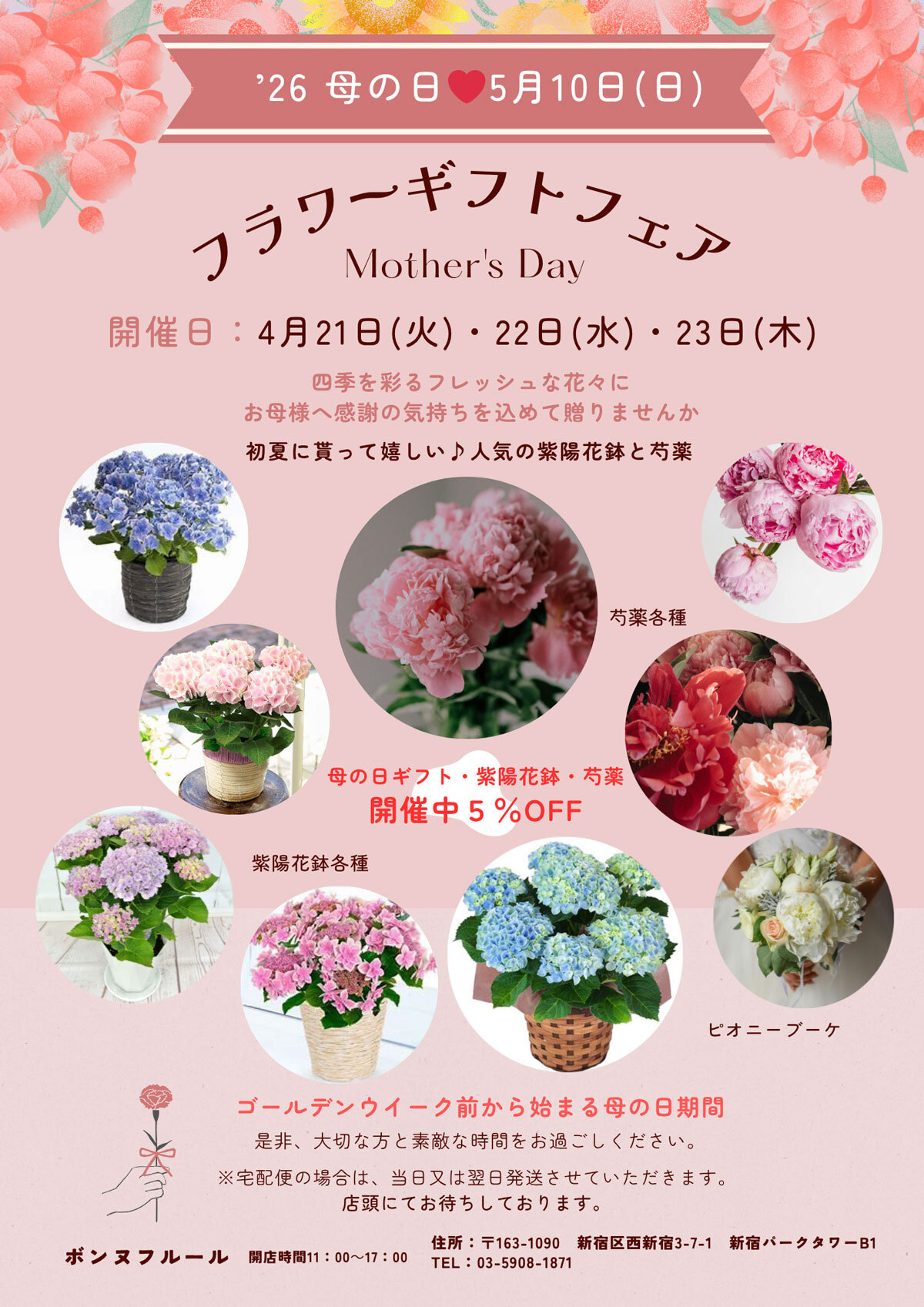 母の日に向けてフラワーギフトフェアを開催いたします。
