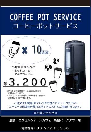 ミーティングに、来客時に、抽出したてのブレンドコーヒーをポットでご用意いたします!